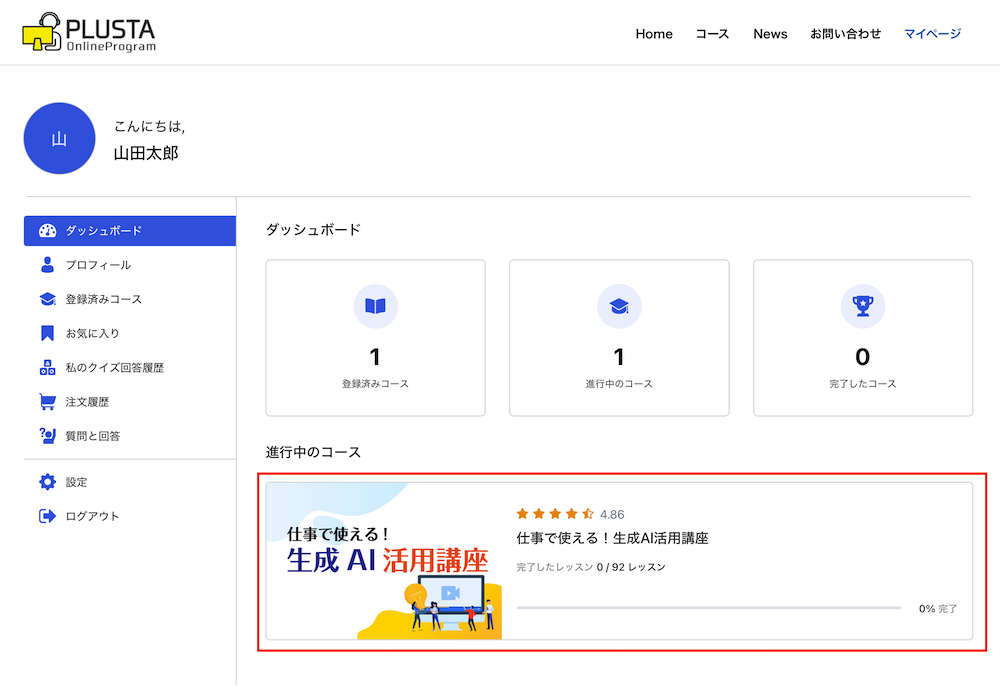 赤枠のコースをクリックしてください。